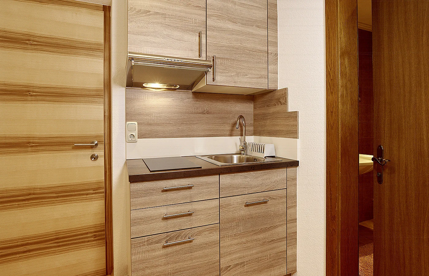 Das Einzimmer-Appartement ist ausgestattet mit einem Badezimmer mit Dusche/WC, einer kleinen Essecke sowie einer praktischen Kochnische mit 2-Platten-Herd, Mikrowelle und Kühlschrank. Außerdem stehen Safe, TV mit Infokanal und Panoramakanal sowie ein Balkon zur Verfügung.